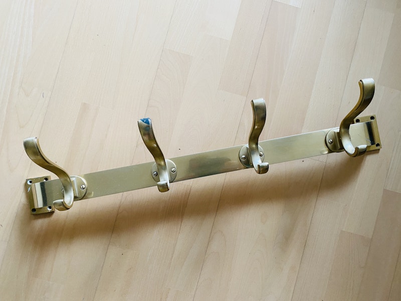 True vintage goldene Wandgarderobe mit vier Haken